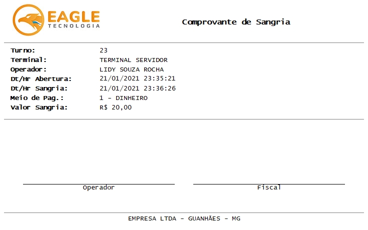 Figura 83: Comprovante de Sangria, modelo 80 mm